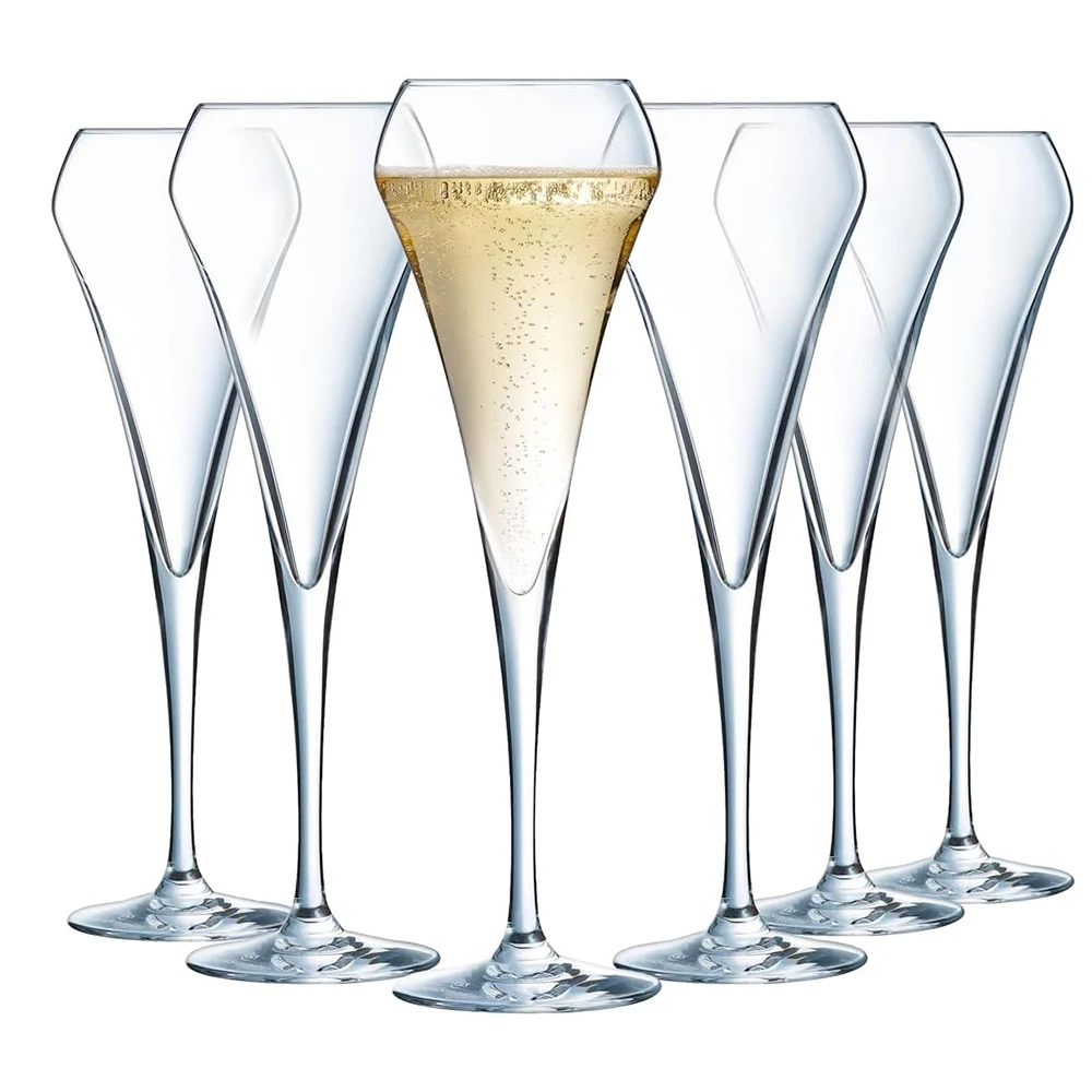 Crystal Champagne Flutes Set of 6 - 210ml Glasses for Perfect Wine Pour and Aroma Enhancement