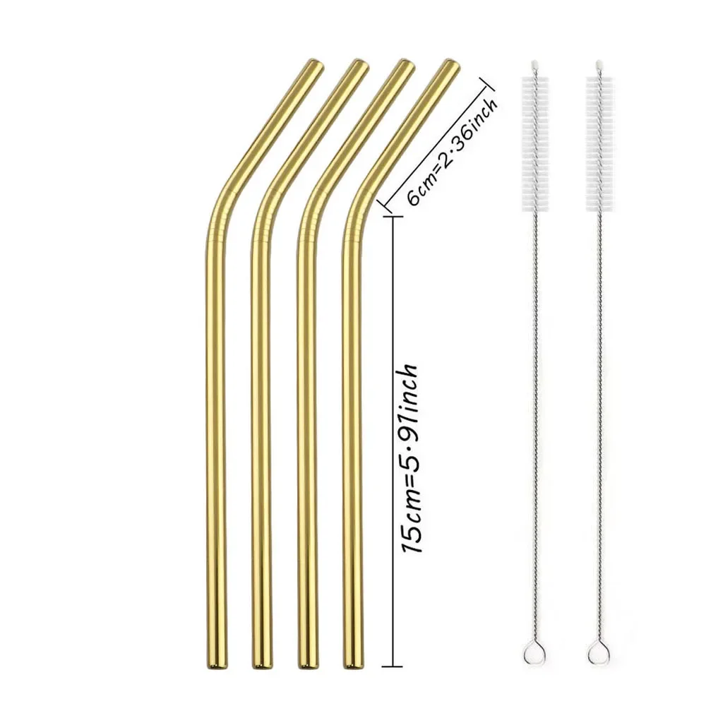 4Pcs Gold Bend Reusable Metal Drinking Straw 304 Stainless Steel Straws with Cleaner Brush for Tumblers Party Bar Accessories