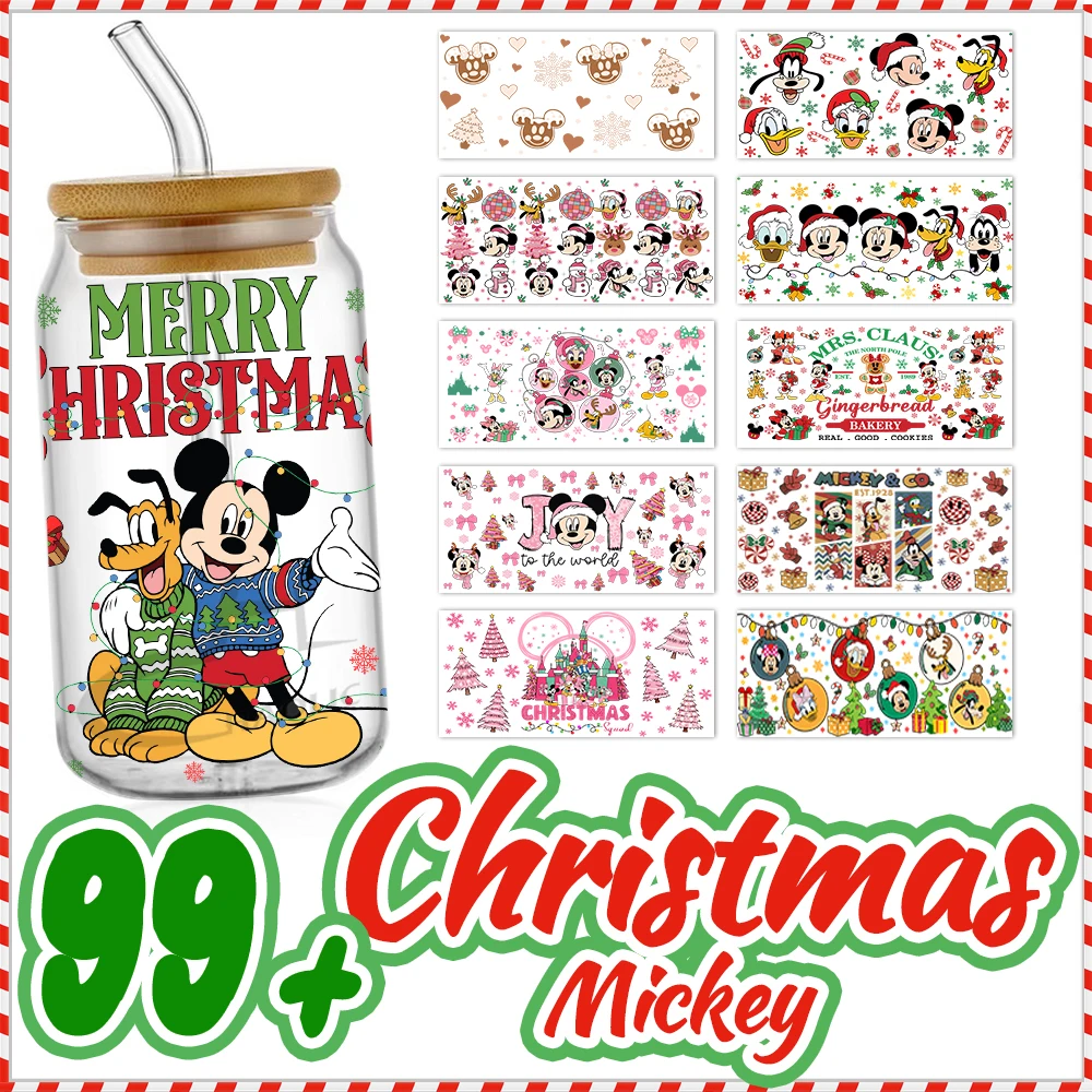 Mickey Christmas 16oz UV DTF Cup Wrap Libbey Glass Plastic Beer Can Tumbler Transfer Stickers Waterproof Permanent Adhesive