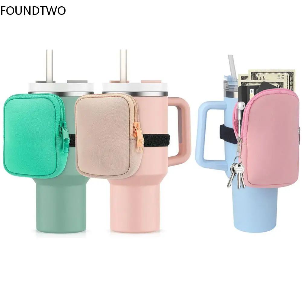 Water Bottle Pouch for For Stanley Cup 40oz/20oz/30oz Water Bottle Caddy Neoprene Tumbler Bag for Cards Keys Wallet Earphone