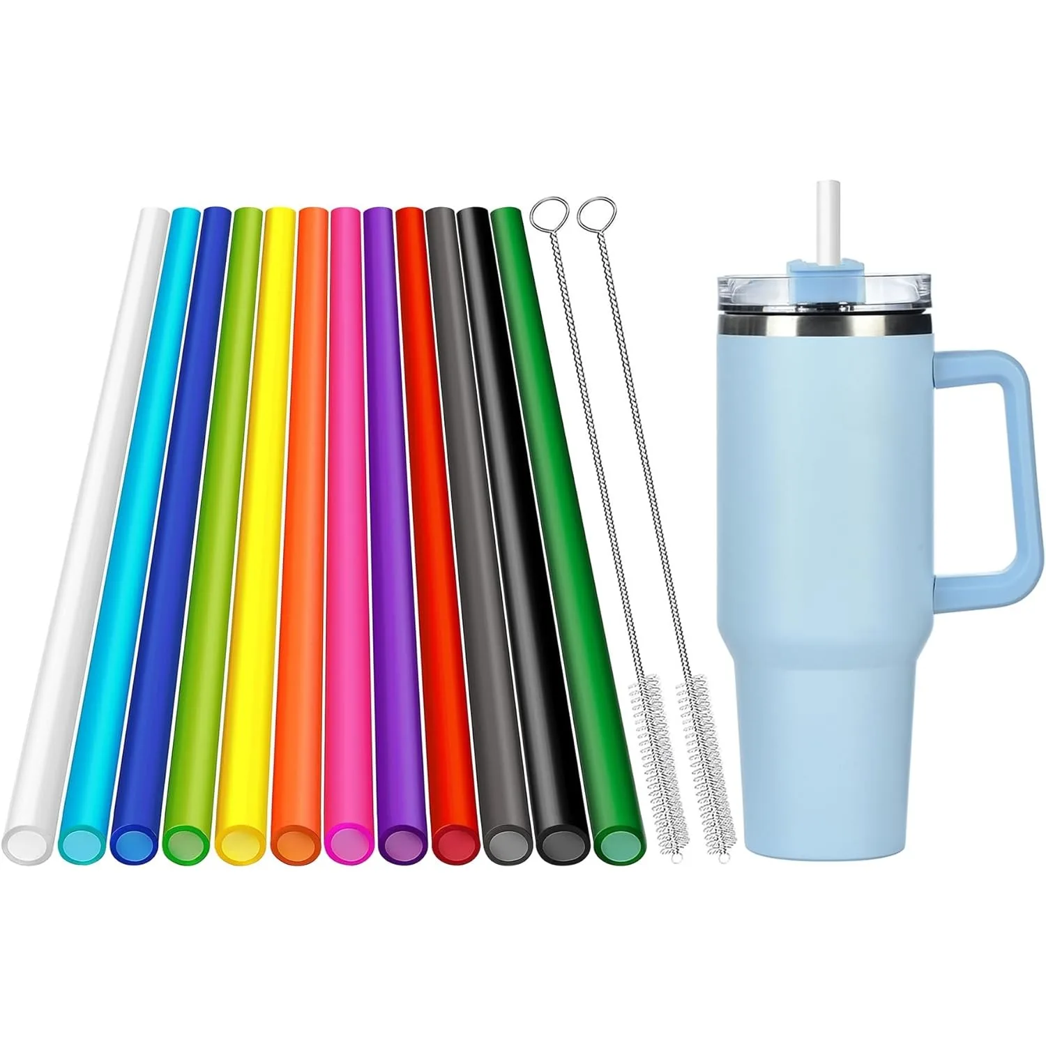12 Pack Color Replacement Straws for 40 oz Tumbler, 12 inch Reusable Straws With 2 Cleaning Brush for Cup