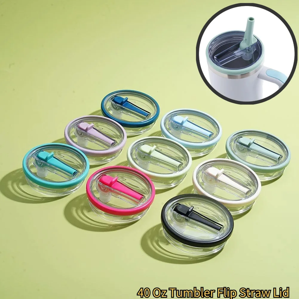 40 Oz Tumbler Flip Straw Lid Replacement Fit Forquencher Spill Proof Resistant Tumbler Lids Reusable Tumbler Cover For