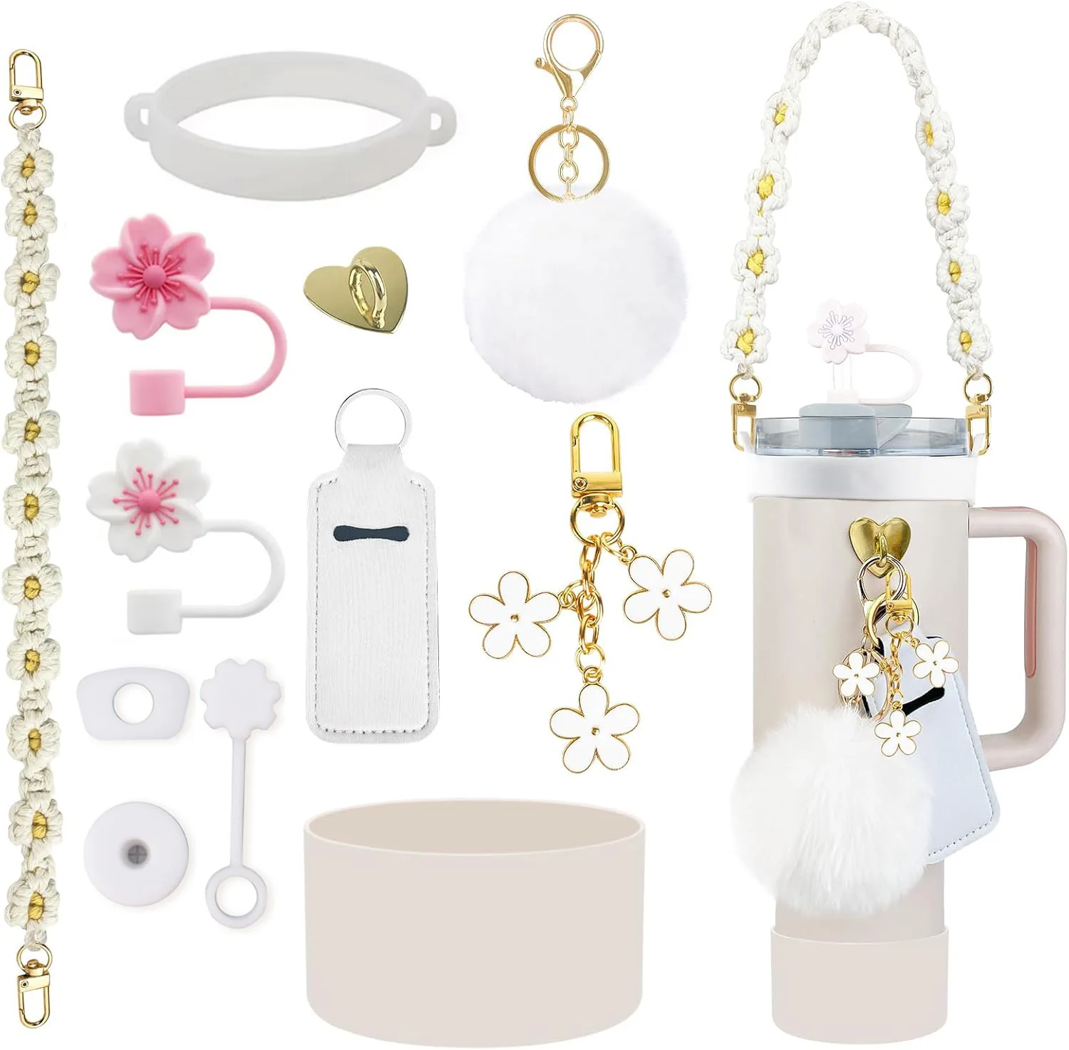 12PCS Accessories for Stanley Cup 30oz 40oz Tumbler Water Bottle Handle Strap Straw Toppers Keychain Charms Silicone Cup Boot