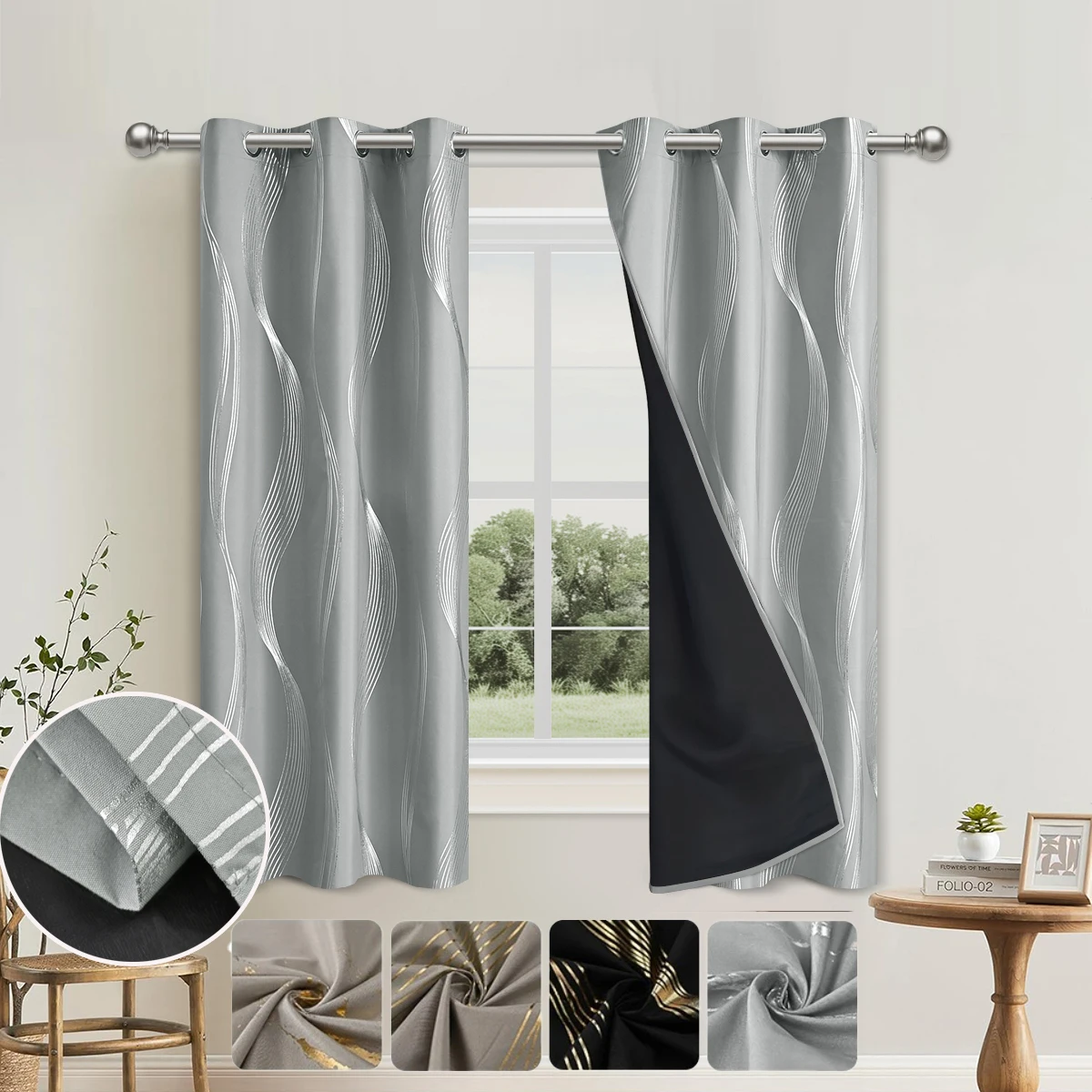 1pc/2pcs 100% Blackout Curtains, Luxury Marble and Wave Pattern Privacy Curtain for Living Room, Bedroom, Home Decor Grommet Top
