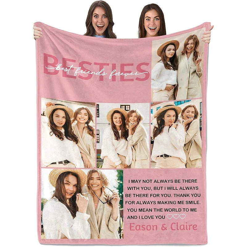 Personalized best friend flannel blanket with custom photo and name number printing, modern style, machine washable