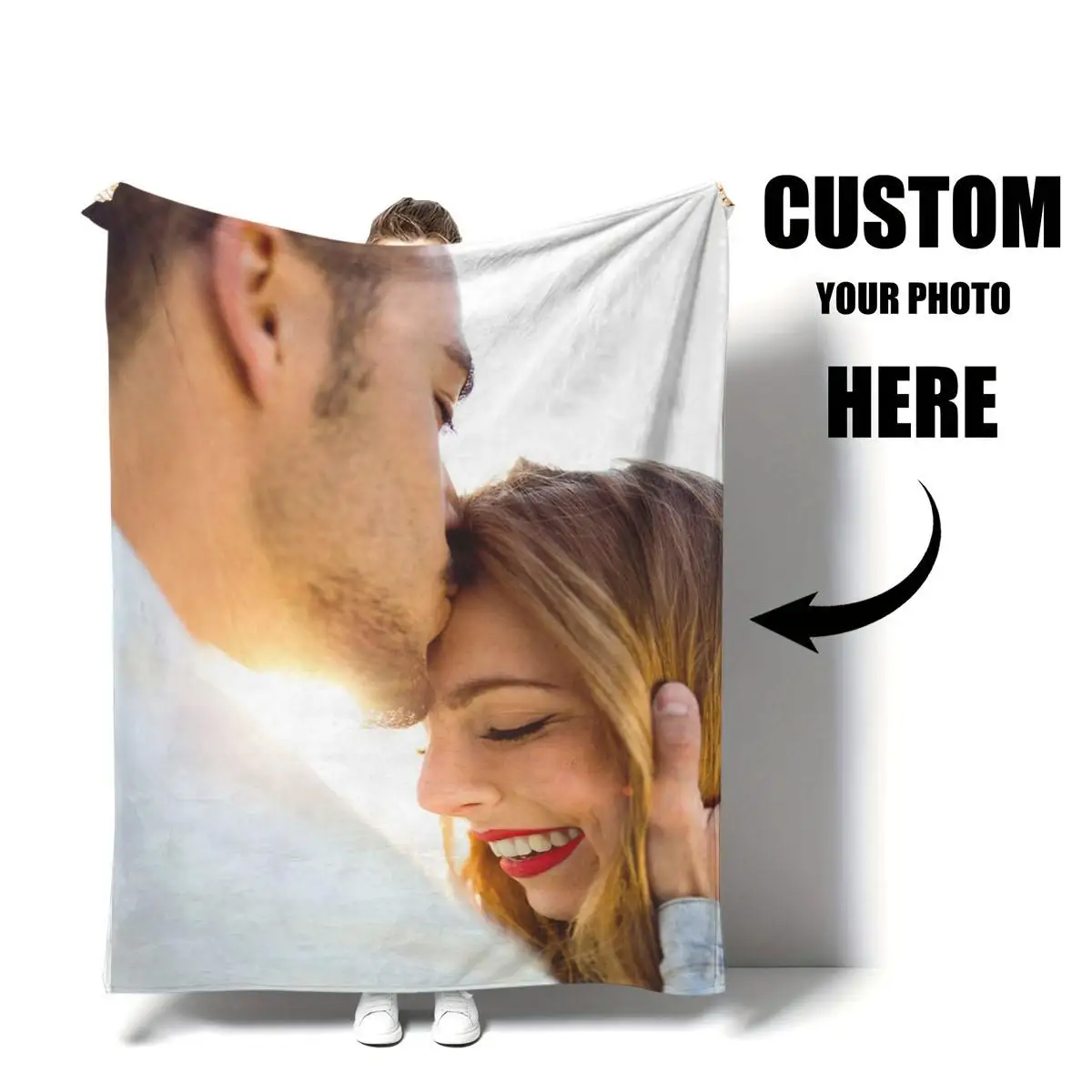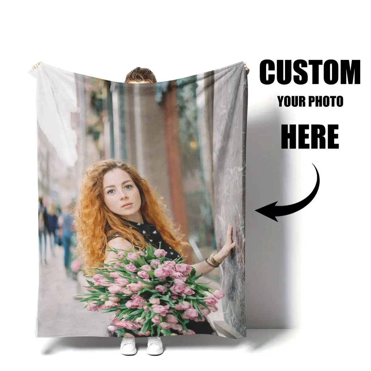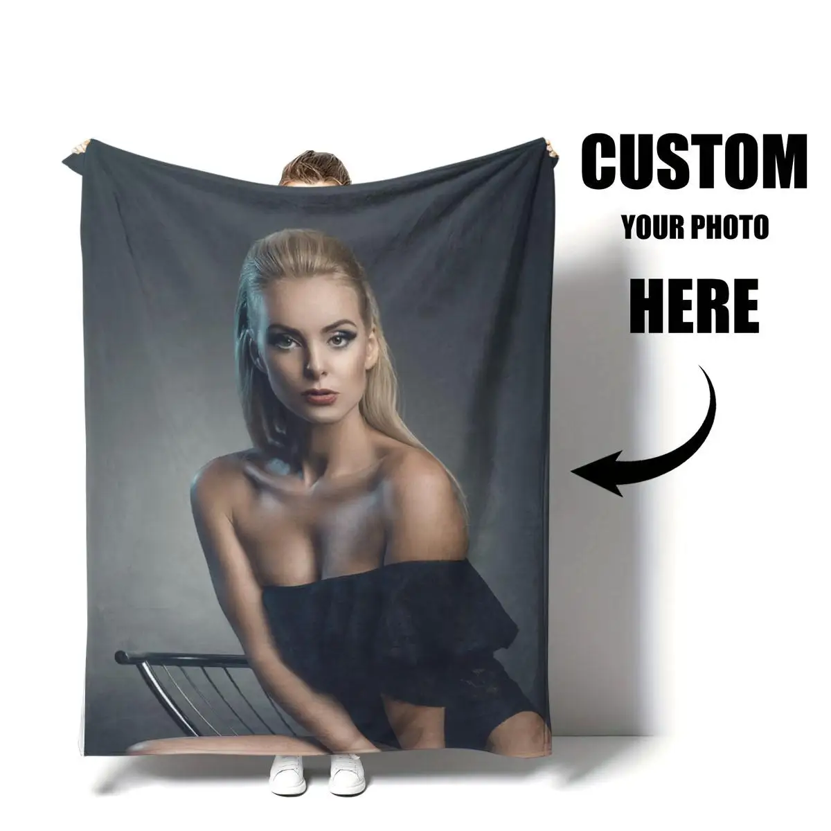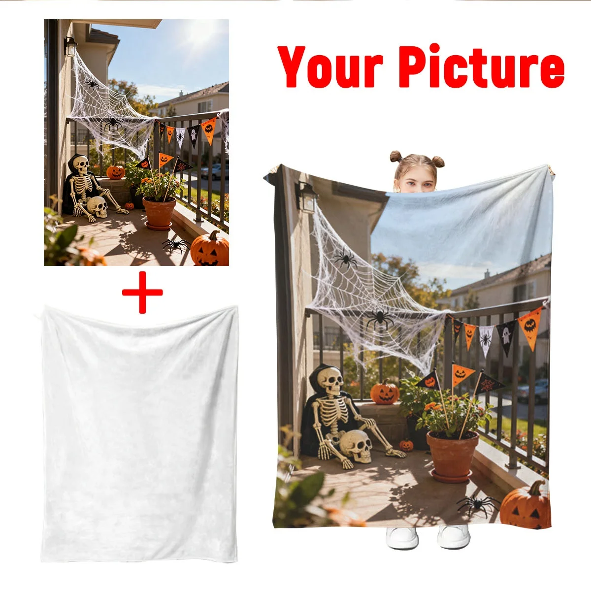 1Pc Custom Photo Personalized Flannel Blanket - Ideal Gift for Christmas, Halloween, Birthday and Anniversary, Soft, Warm, Plaid and Skin-Friendly Machine Washable Blanket, Suitable for Sofa Bed Car