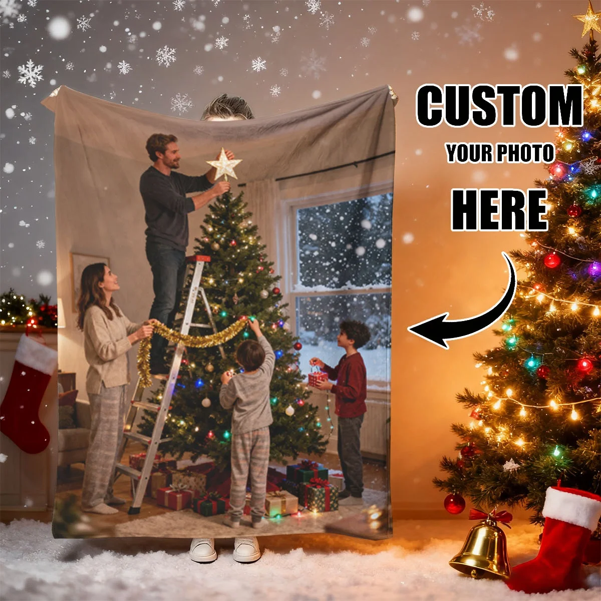 1 Custom Christmas Personalized Photo Flannel Blanket - High-Definition Print That Doesn'T Fade, Lightweight, Warm, Skin-Friendly, Machine Washable, Suitable for Bedroom, Sofa, Office, Christmas