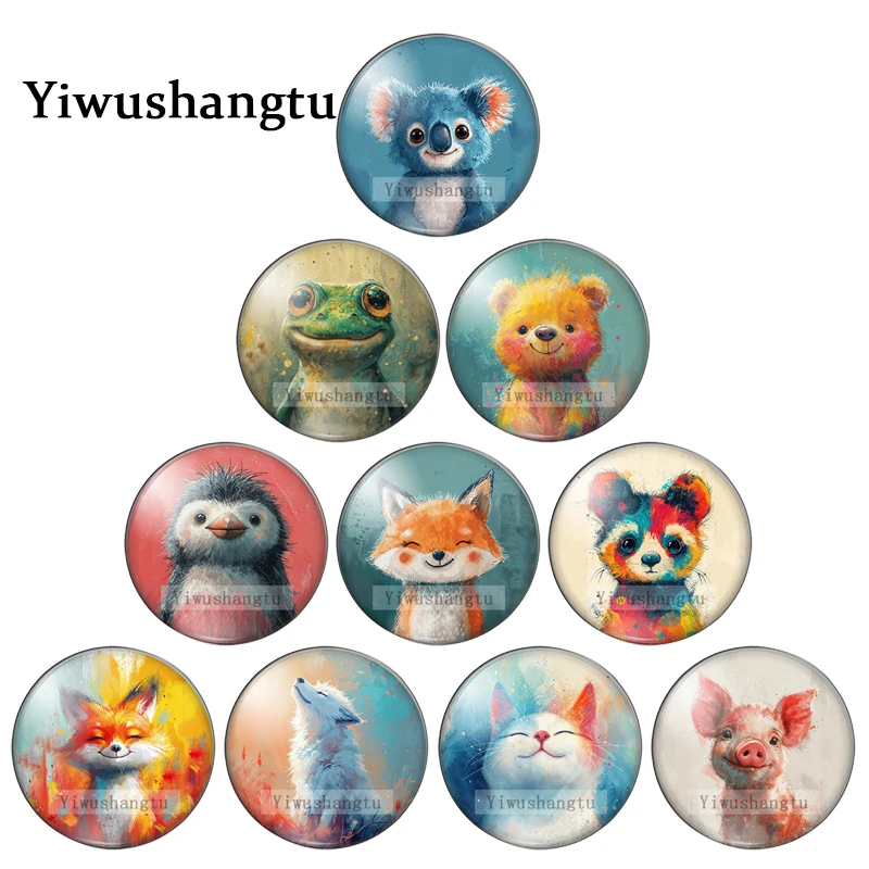 Oil paint Punk Wolf Pig Bear Frog Head Patterns 8mm/12mm/20mm/25mm Round photo glass cabochon demo flat back Making findings