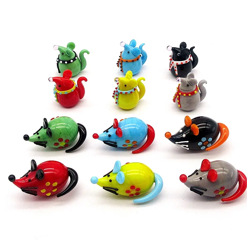 2020 new year symbol Handmade Murano glass mouse Figurines Christmas ornament Home decor cute Miniature Animals glass rat statue