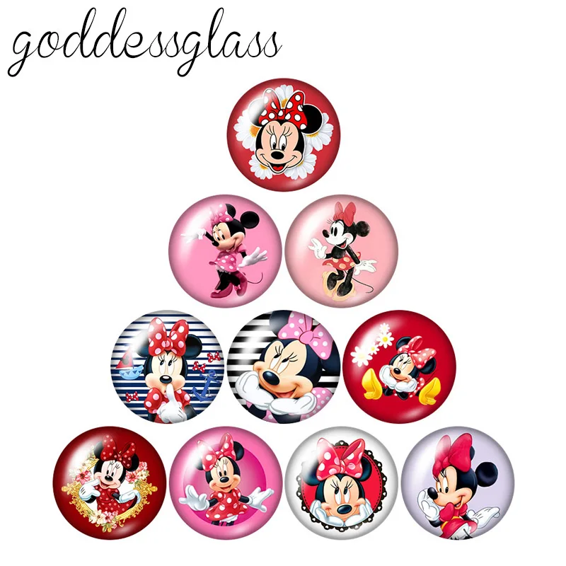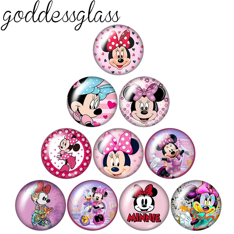 Disney cute Minnie Mouse Cartoon 10pcs 12mm/18mm/20mm/25mm Round photo glass cabochon flat back Making findings for bracelets
