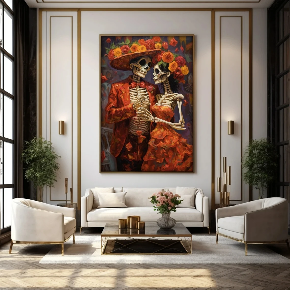 Modern Mexico Day of the Dead Skeleton Couple Gift Wall Art Prints Canvas Painting Poster Pictures For Living Room Home Decor