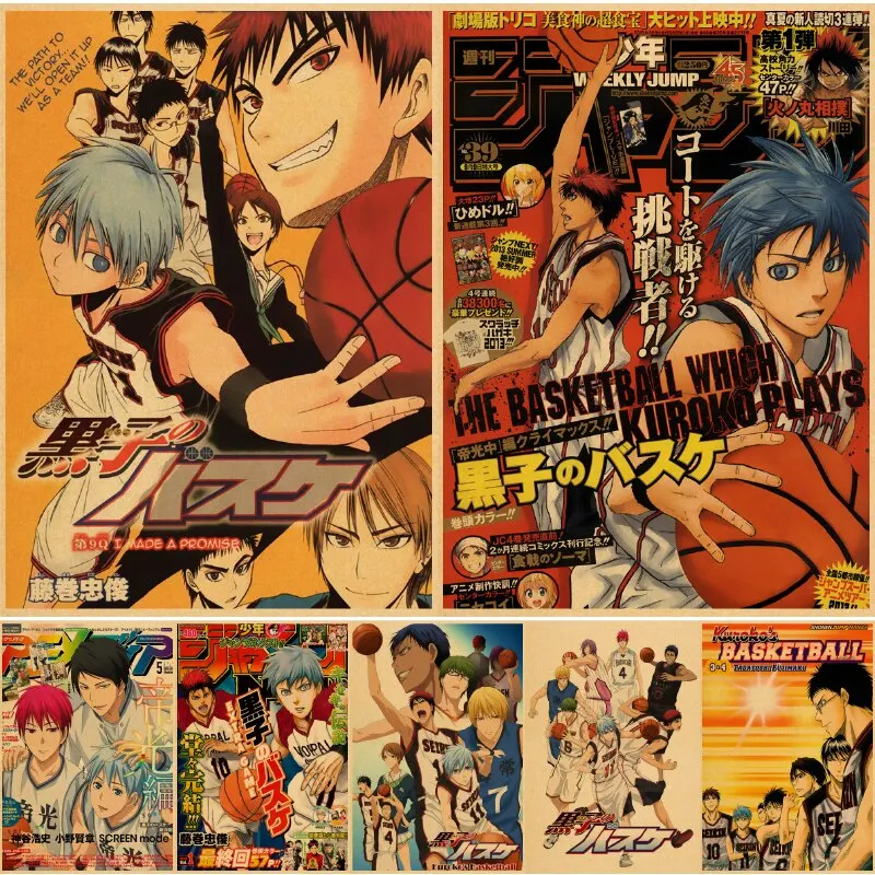 Vintage Kawaii Japanese Anime Kuroko No Basket Poster Kraft Paper Art Print Wall Decor for Home Room Cartoon Painting Stickers