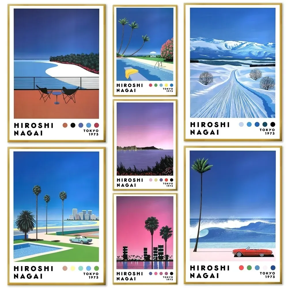 Vintage Nagai Hiroshi Vaporwave Japan Beach City Summer Poster Paper Print Home Bedroom Entrance Art Painting Decoration