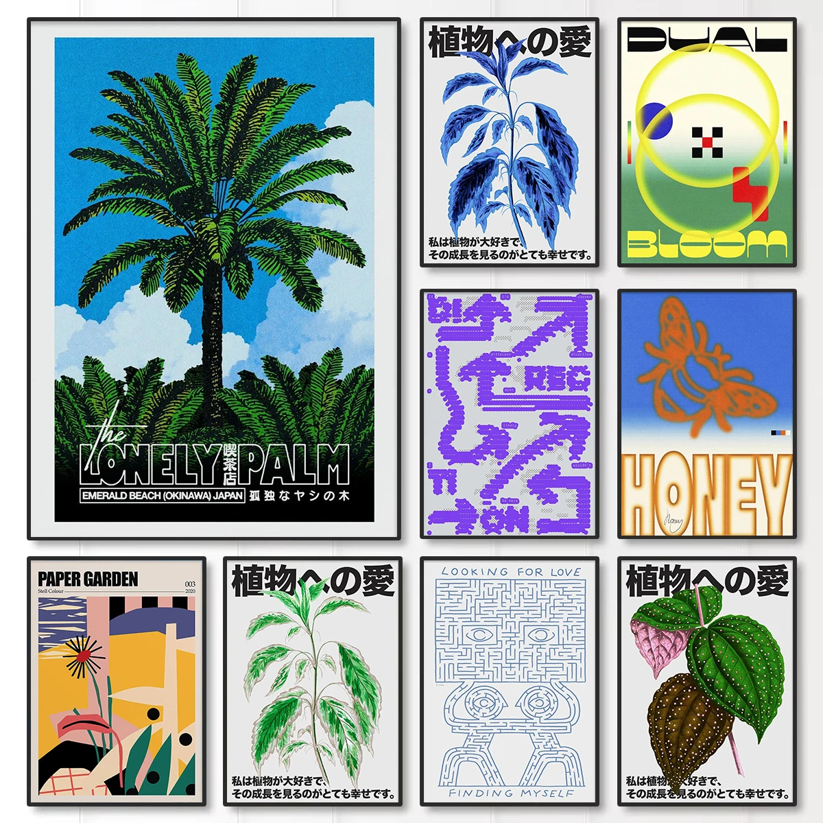 Vintage Different Golden Palm Botanical Canvas Prints Japan Love Botanical Wall Art Poster for Modern Living Room and Home Decor