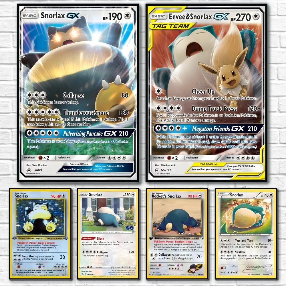 Japanese Anime Rare Snorlax Cartoon Card Poster Sticky Wall Art Printing Waterproof Home Living Bed Room Bar Aesthetic Decor