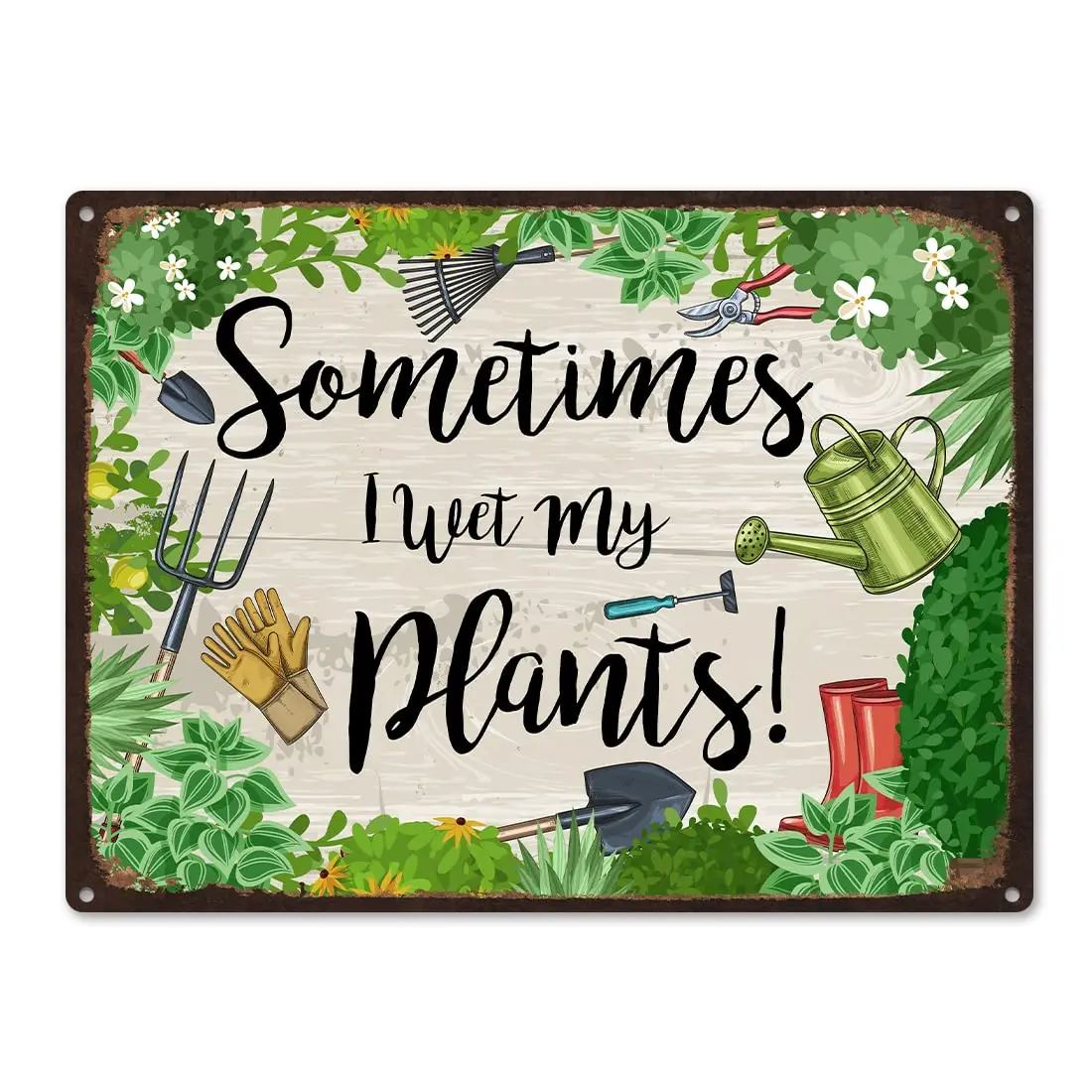 Funny Garden Signs Decor Outdoor - Sometimes I Wet My Plants Metal Sign Rust Free 9; X 11;, Pre-Drilled Holes, Weather Resistant