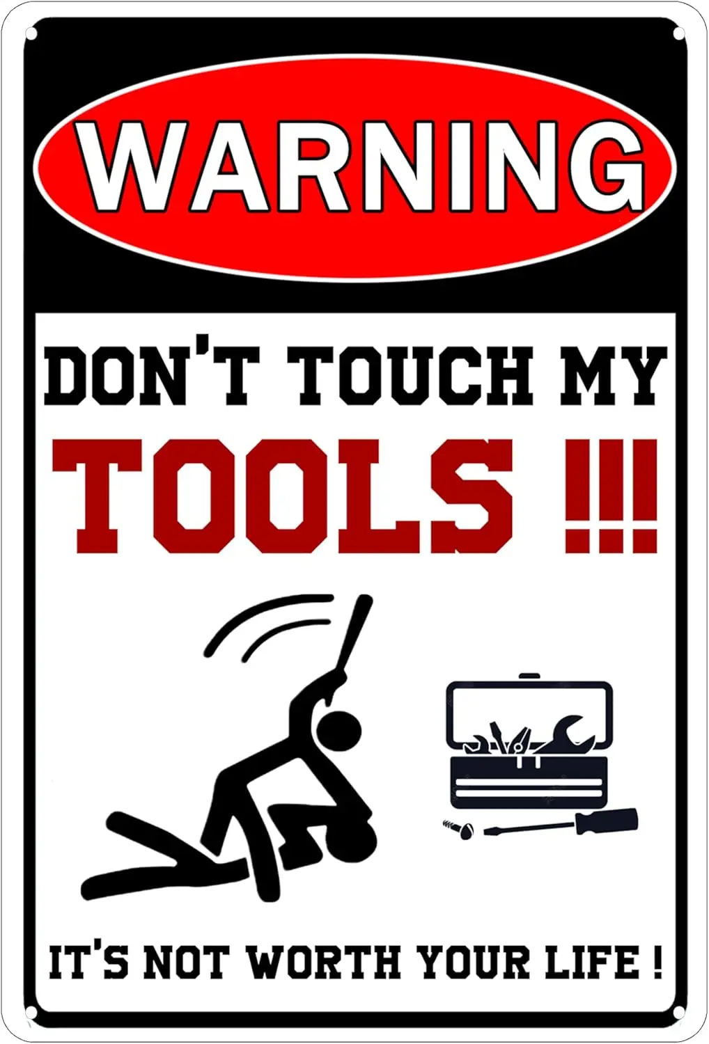 Funny Sign Vintage Tin Metal Sign Retro Wall Art Dont Touch My Tools for Garage Study Entryway Living Room and Bar Great Gift