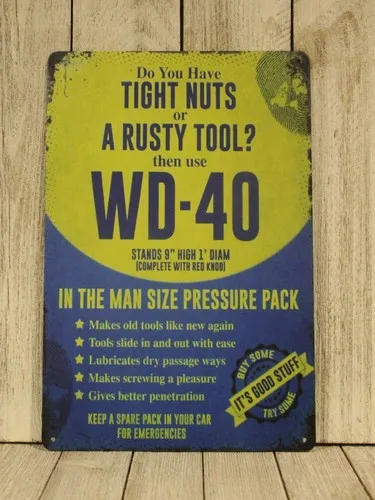Tin Sign Tight Nuts Rusty Tool Rustic Vintage Style Funny WD40 97