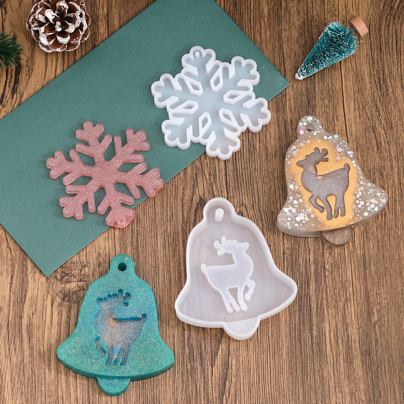 DIY Christmas Pendants Epoxy Resin Silicone Mould Christmas Tree Elk Snowflake Bell Pendant Resin Mold Xmas Decor Hanging Tags