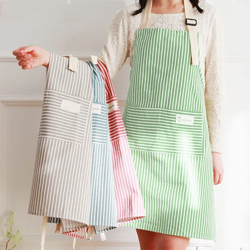 Cotto Linen Striped Apron With Thin Cotton Fabric Waistband For Stain Oil Resistance Coffee Overalls Apron Kitchen Accessories