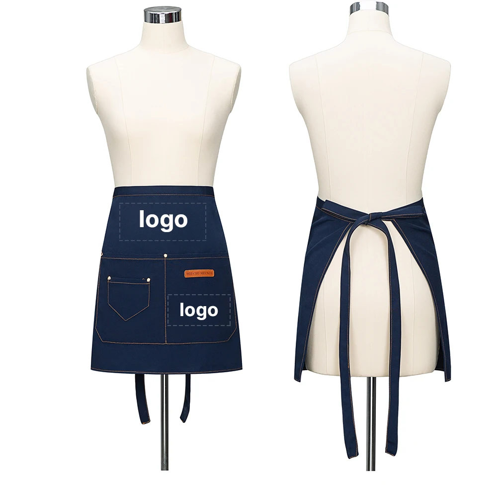 Customized Waist Bib Apron for Women Canvas Short Half Aprons Logo Design Restaurant Work Waiter Mandil Kitchen Cleaning Things
