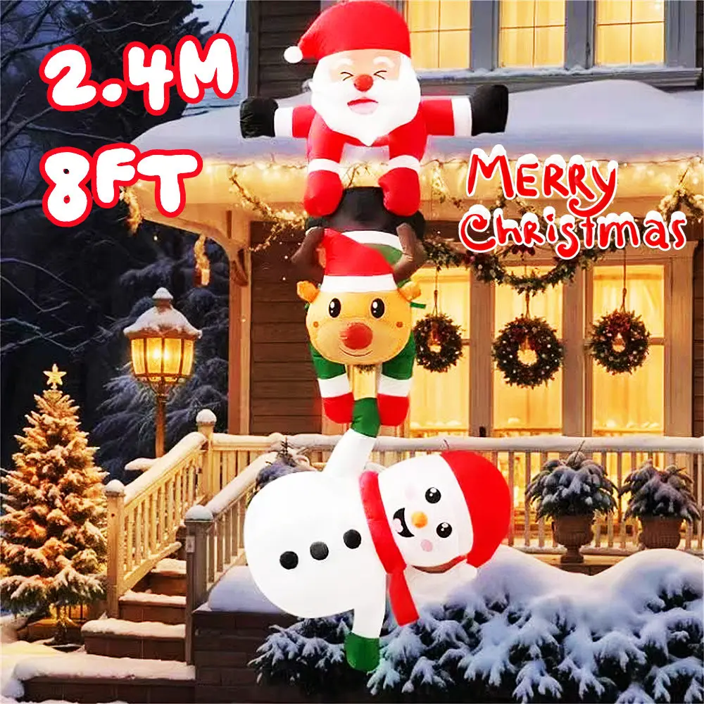 8FT Christmas Inflatables Snowman & Santa Claus Reindeer Outdoor Decorations with LED for Outdoor Yard Beam Roof Tree Xmas Decor