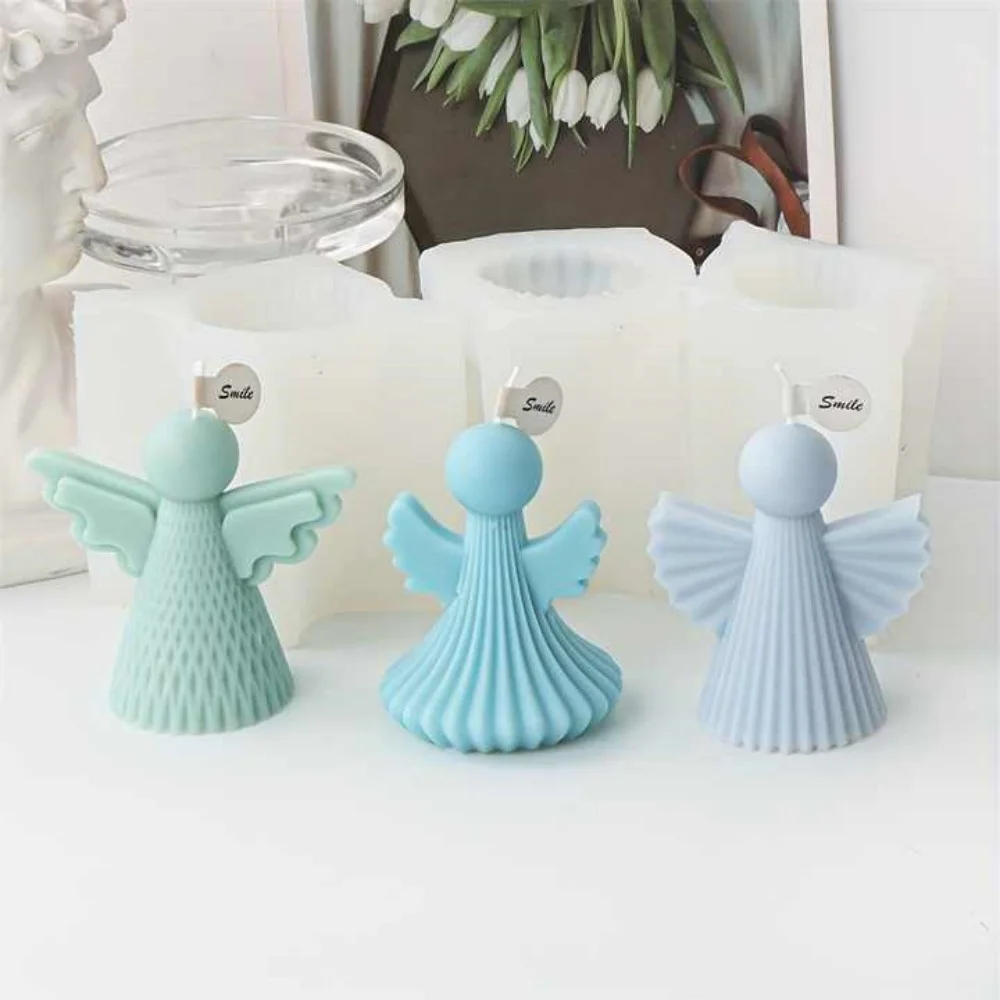 Angel Silicone Candle Mold Aromatherapy Wax Polymer Clay Resin Statue Tool Art Wing Stripe Grid Design Male Female Angels Decor  Read more