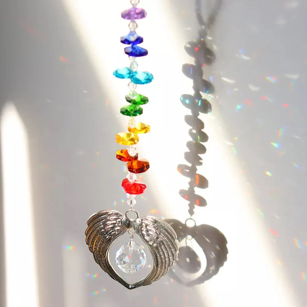 Angel Wing Pendant with Crystal Ball Rainbow Sun Catcher Window Home Decor