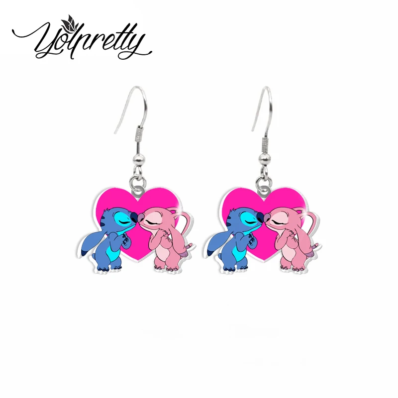 2024 New Arrival Cartoon Stitch and Angel Cosplay Characters Handcraft Acrylic Epoxy Fish Hook Earrings  Read more