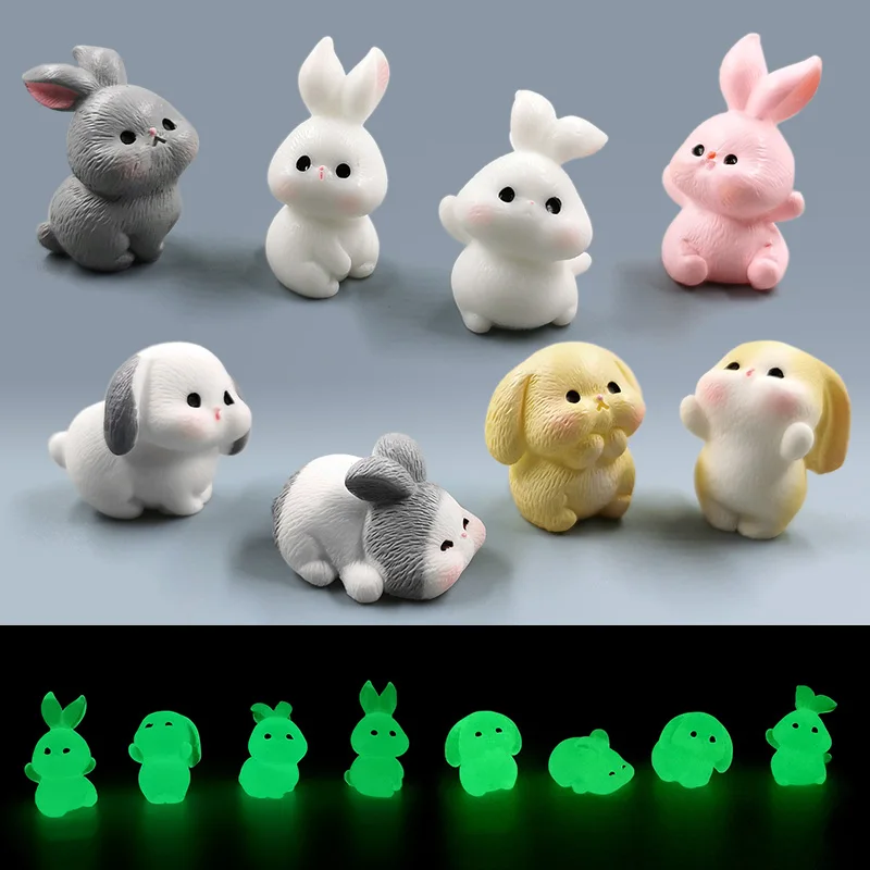 8pcs Glow Rabbit Luminous Cute Figurine Diy Home Kawaii Room Decor Miniature Fairy Garden Decoration Accessories Modern Statue