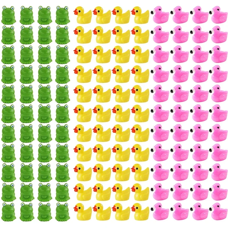 100PCS Mini Resin Frogs Flamingos and Duck Animal Miniatures - Fairy Garden Ornament, Micro Landscape DIY Crafts Potted Decor  Read more