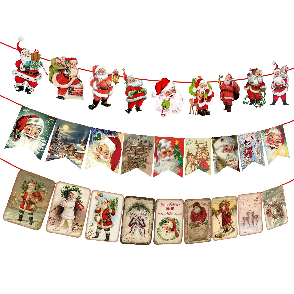 Merry Christmas Paper Hanging Banner Set Santa Elk Pattern Bunting Christmas Festival Scene Layout Home Party Decoration Supplie