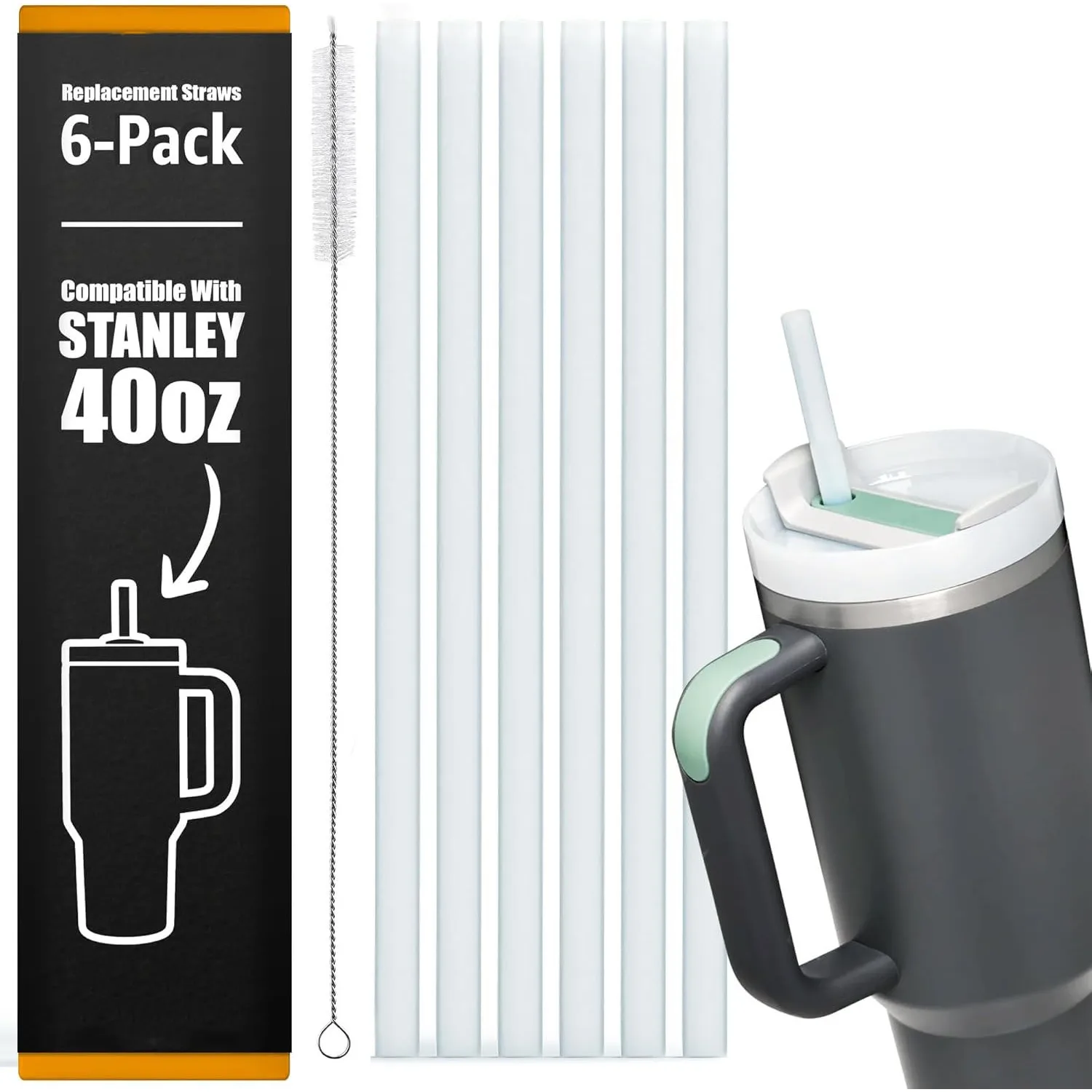 6 Pcs Replacement Straws Compatible with Stanley 30oz 40oz Tumbler, Reusable Plastic clear straws with 1 Cleaning Brush
