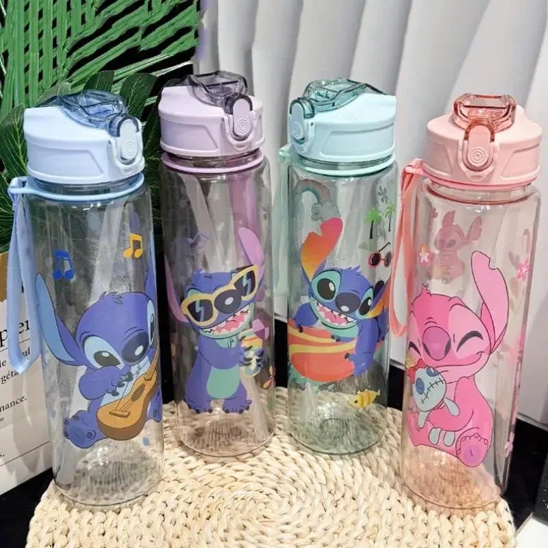 Stitch Cartoon Plastic Water Bottle 2025 New Collection 800ml Large Capacity Kids Tumbler with Lockable Straw for School Outdoor