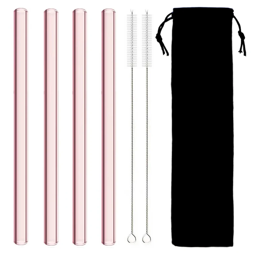 4pcs Christmas Glass Straw Milk Tea Juice Cocktail Straw with Brush High Borosilicate Glass Straw Set Kitchen Bar Accessories  Read more