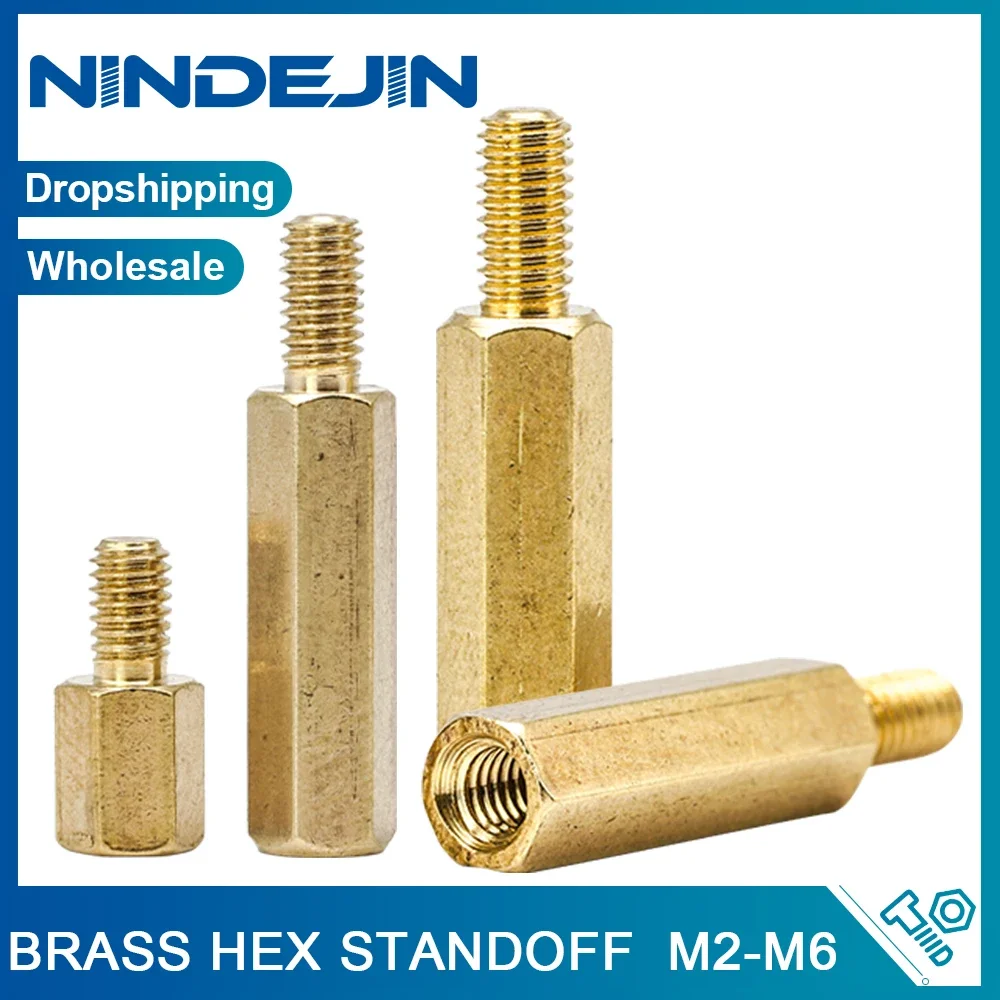 NINDEJIN Male Female Hex Brass Spacer Standoff Screw Nut M2 M3 M4 M5 M6 Threaded Pillar Standoffs Screws for PCB Motherboard