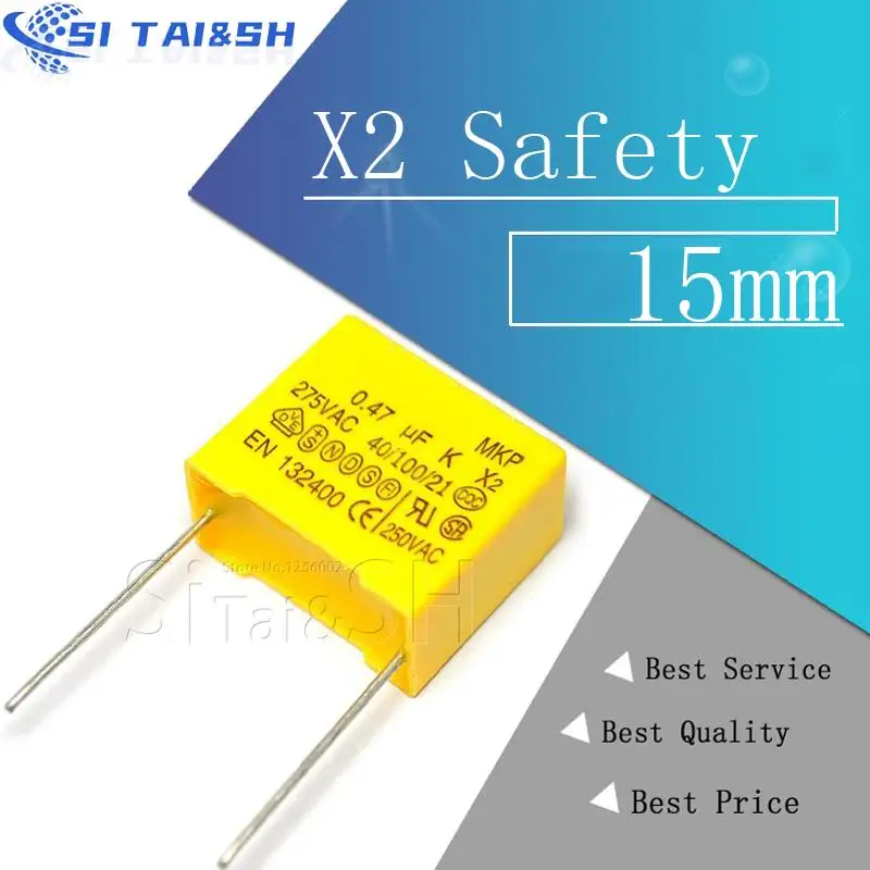 10pcs X2 Safety capacitor 15mm 275VAC 275V 0.022UF 0.047UF 0.1UF 0.15UF 0.22UF 0.33UF 0.47UF 0.68UF 1UF Polypropylene film