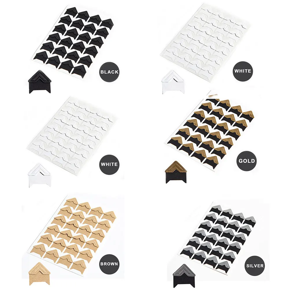 120PCS Corner Stickers Black Gold White Sliver Brown DIY Vintage Sticker Scrapbook Self-Adhesive Photo Album Accessories Decor