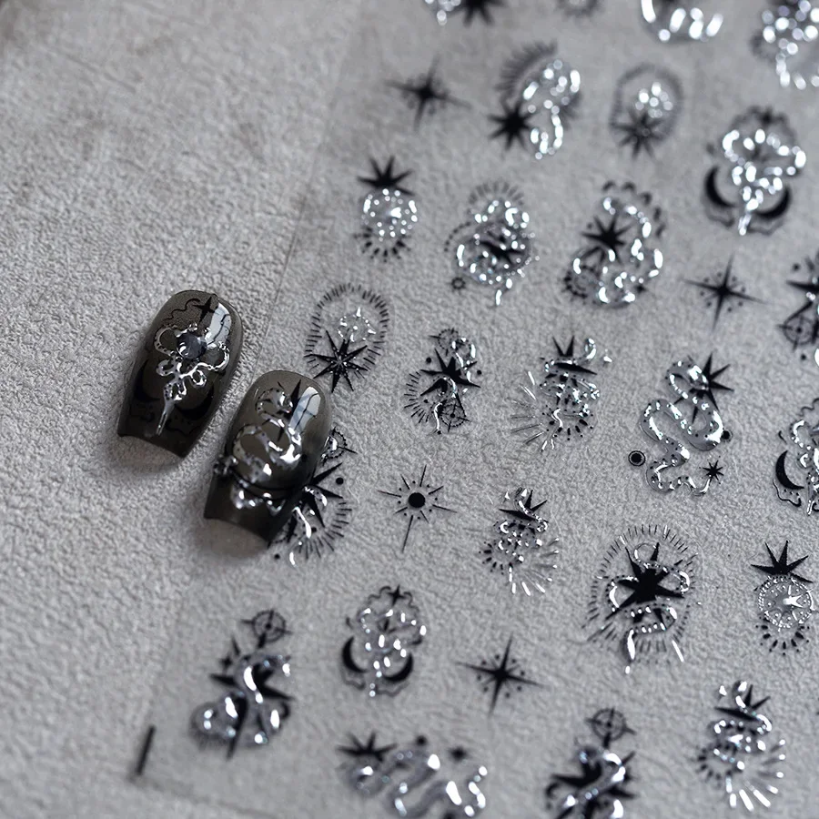 5D Gold Stamped Silver Sun Stars Snake Nail Art Stickers Totems Reliefs Self Adhesive Dark Chinese Style Manicure Decals
