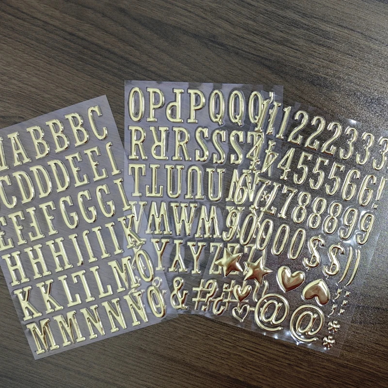 3 Sheets 3D Gold Puffy Letter Number Stickers DIY Crafts Stationery Glitter Scrapbook Self-Adhesive Decoration Decals Kids Toys