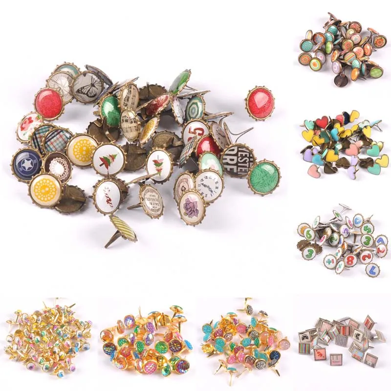 mix vintage Diy Brads Scrapbooking Embellishment Fastener Brad Metal Crafts Decoration CP2583