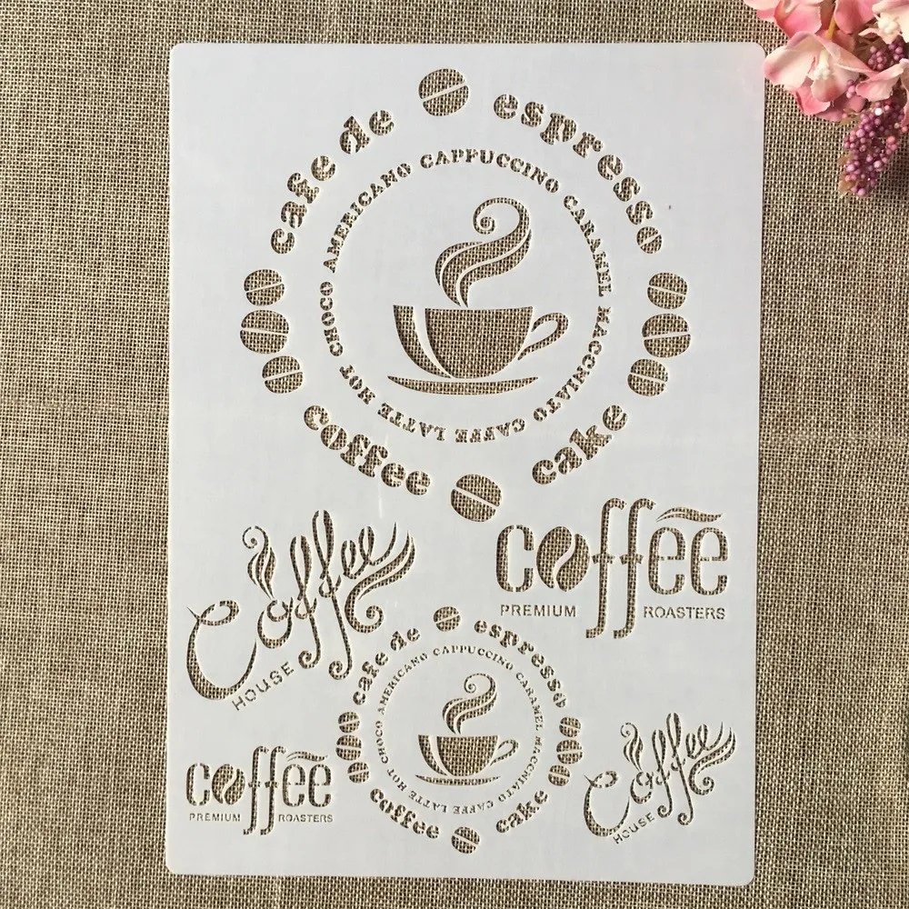 A4 29cm Vintage Coffee Cup Bean DIY Layering Stencils Wall Painting Scrapbook Coloring Embossing Album Decorative Template