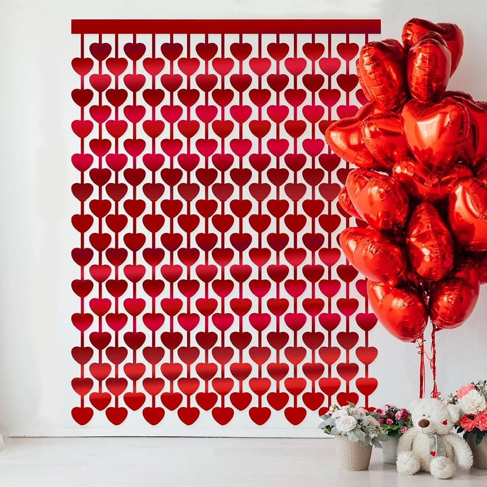 1x2 m Red Heart Shape Tinsel Fringe Curtain Party Curtain Love Backdrop Birthday Decor Valentine's Day Baby Shower Wedding Decor