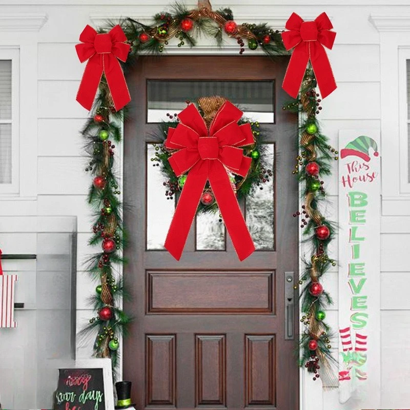 Red Christmas Bows Outdoor Decorations Large Christmas Tree Top Bow Velvet Wreath with Glitter Gold Edge Front Door Decoration
