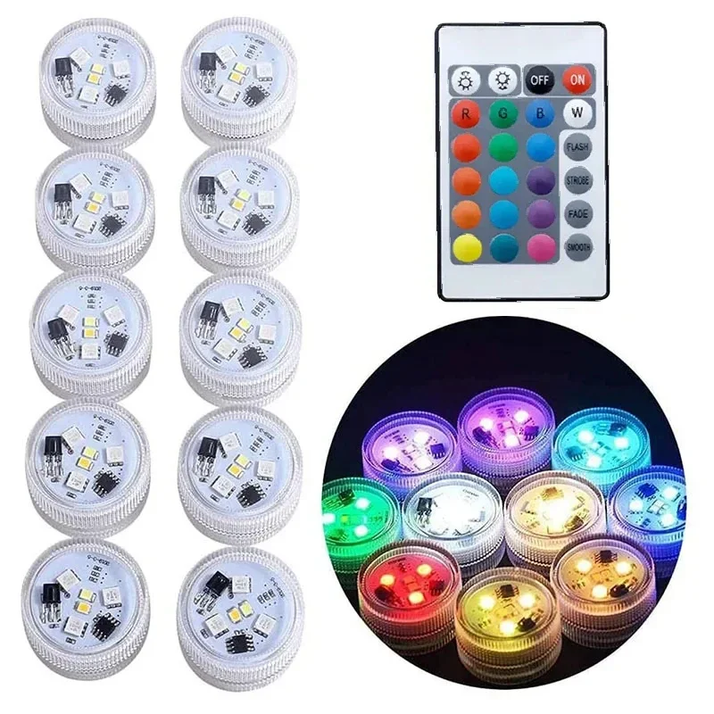 Battery Operated LED Underwater Lights Remote 16 Colors Submersible Light RGB Tea Lamp for Weeding Xmas Valentine's Day Party