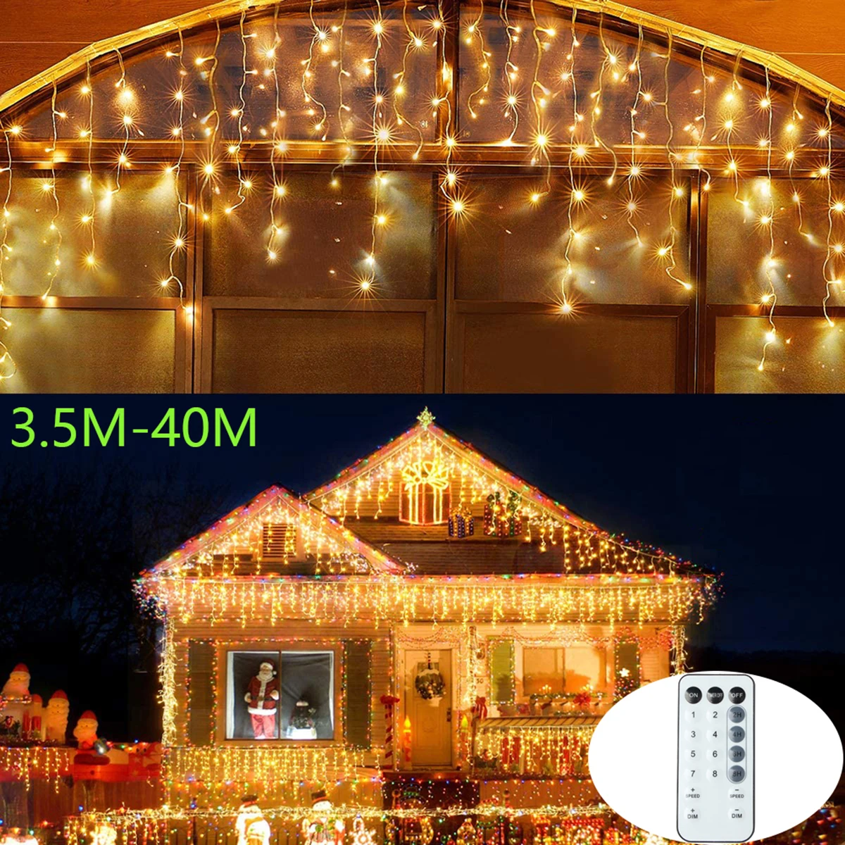 3.5M-40M LED Icicle Curtain String Fairy Lights Garland Outdoor Christmas Lights New Year Birthday Wedding Street Holiday Decor