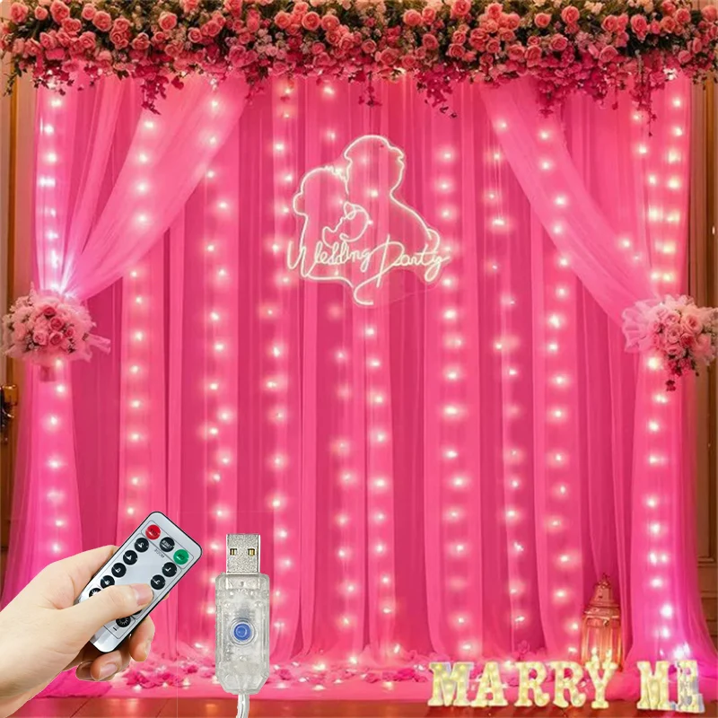 Holiday LED Curtain Lighting String USB 8 Modes Christmas New Year Party Lights Home Wedding Birthday Venue Decor Aesthetic  Read more