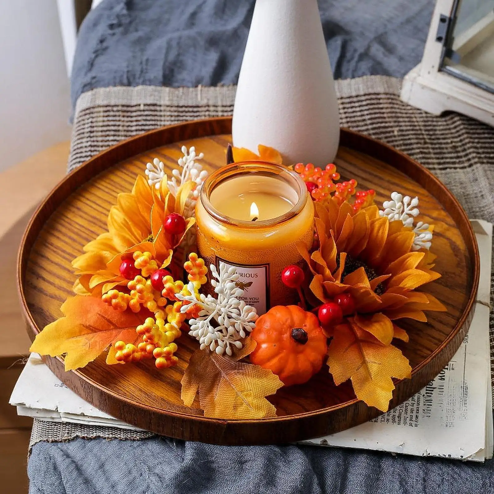 Candle Ring Artificial Wreath for Thanksgiving Harvest Festival Pumpkin Sunflower Candle Candlestick Wreath Decoration Supplies