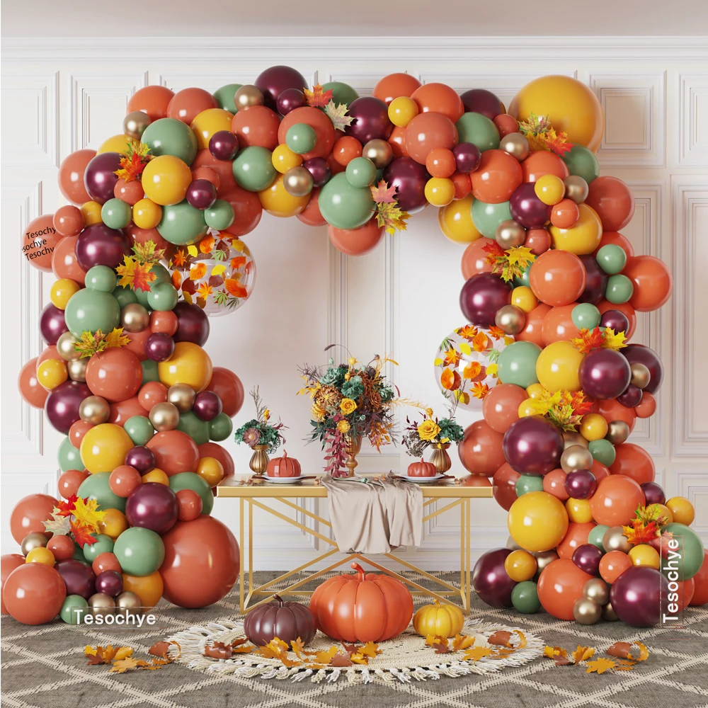 171pcs Autumn Theme Balloon Arch Garland Kit 4D Maple Leaf Foil Balloon Thanksgiving Party Decor Fall Harvest Festival Supplies