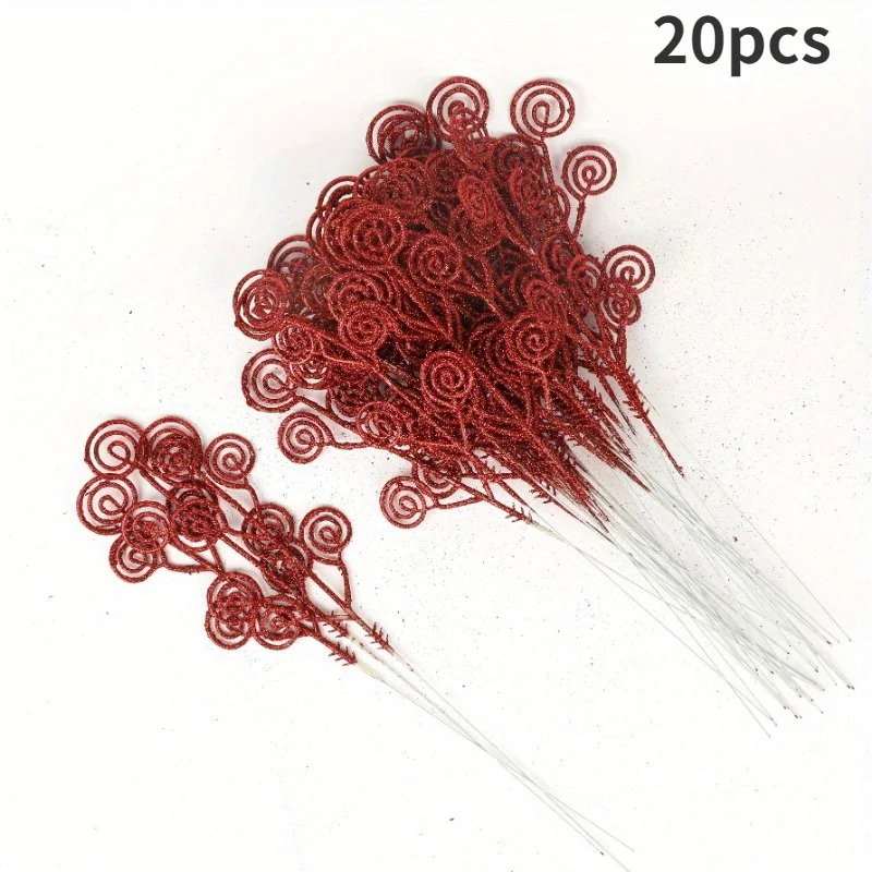 20pcs Artificial Glitter Candy Circle Spray Leaf Picks Christmas Wedding Wreath Tree Arrangment Vase Bouquets Table Decoration